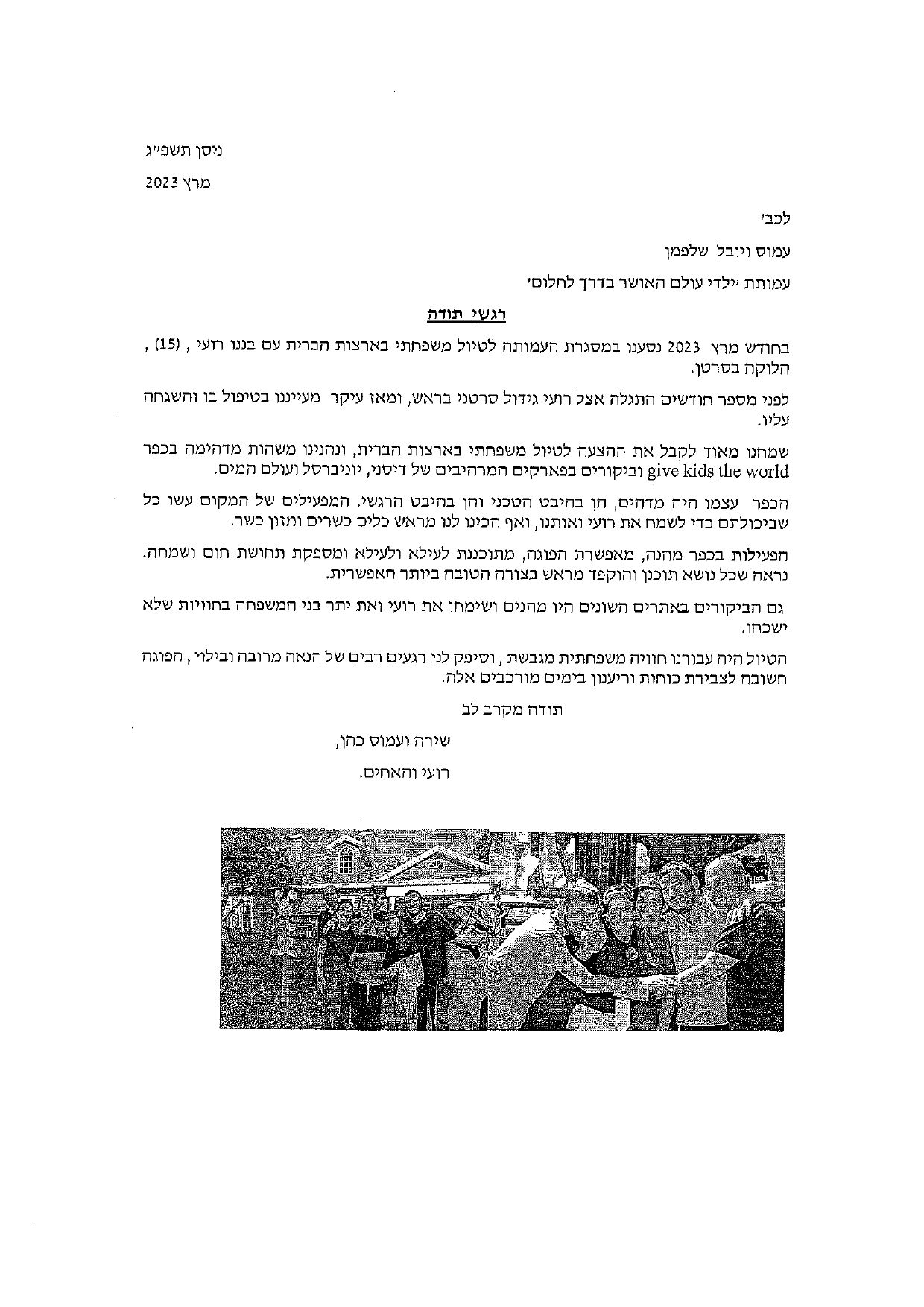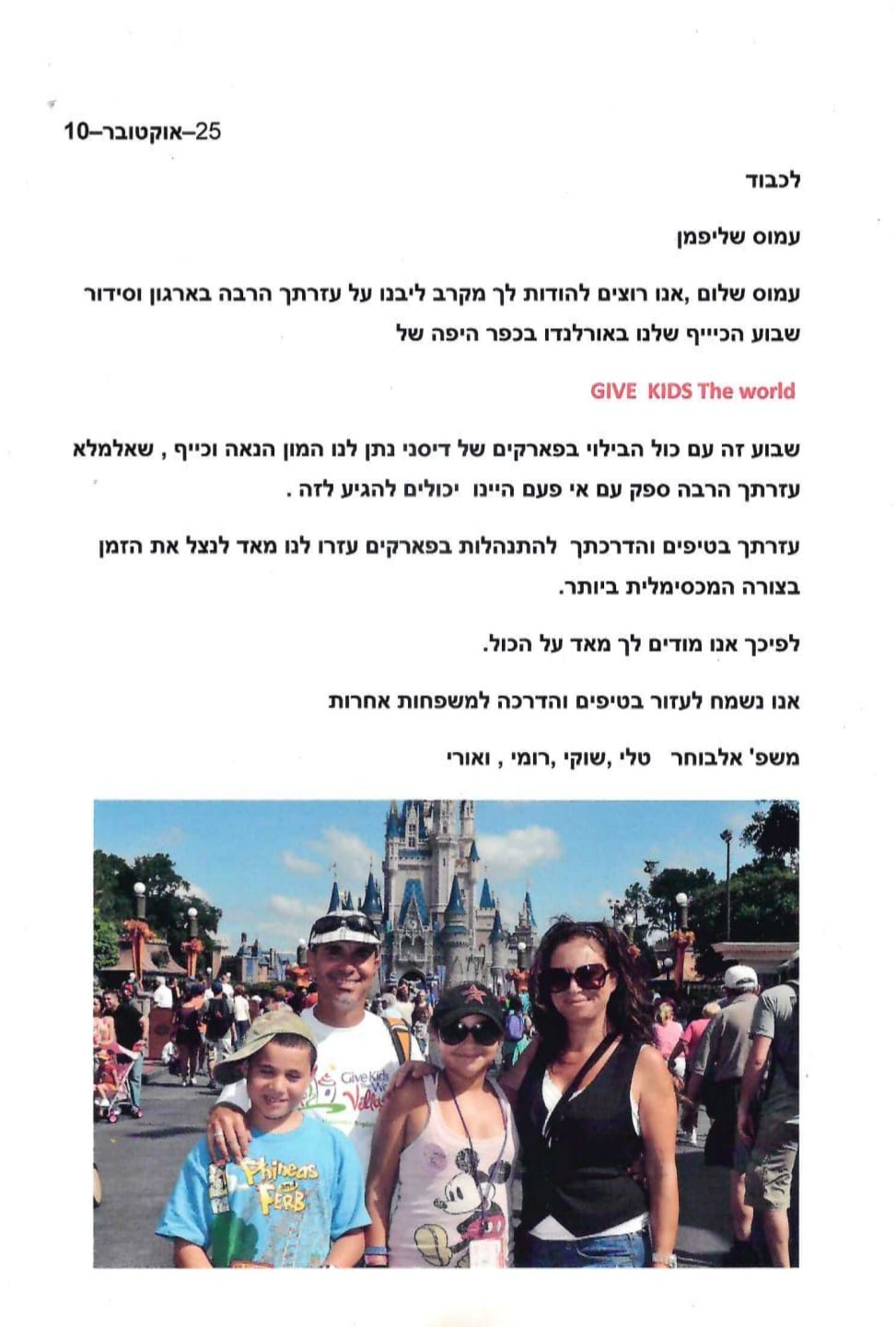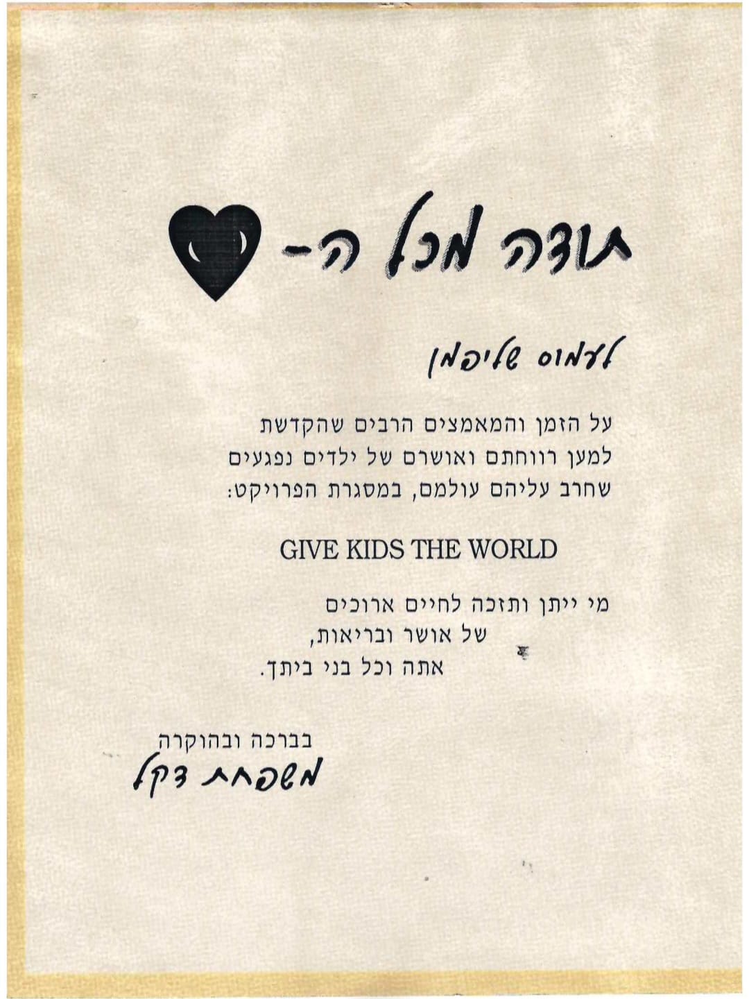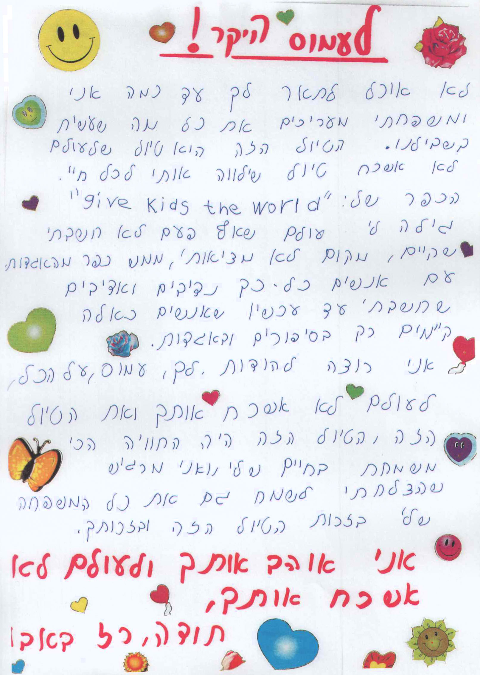 מבחר מכתבים שקיבלנו מילדים ומשפחות, לחצו להגדלה