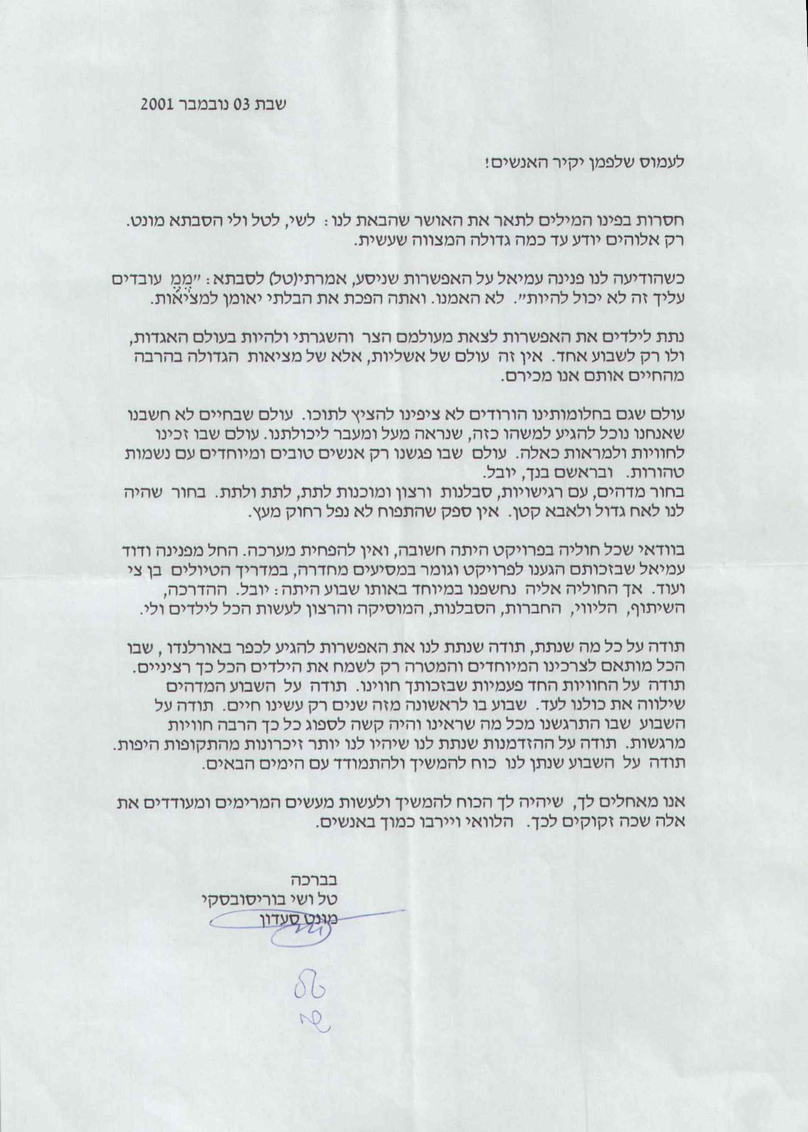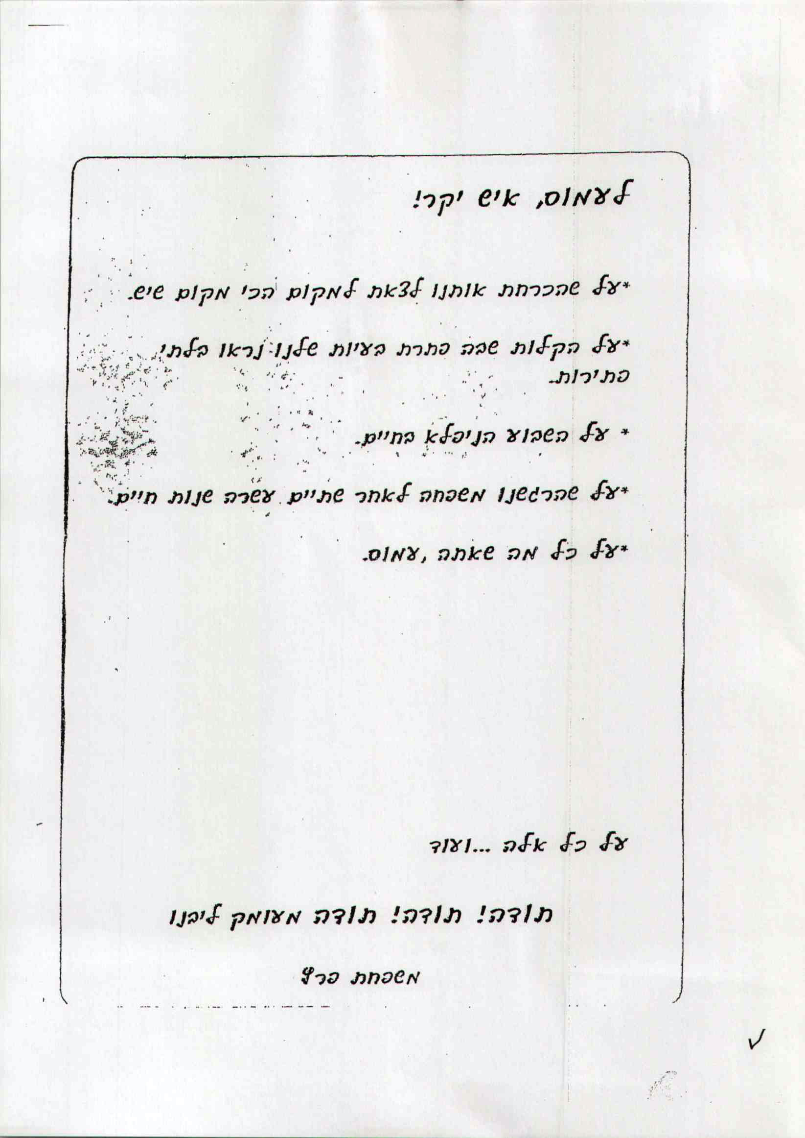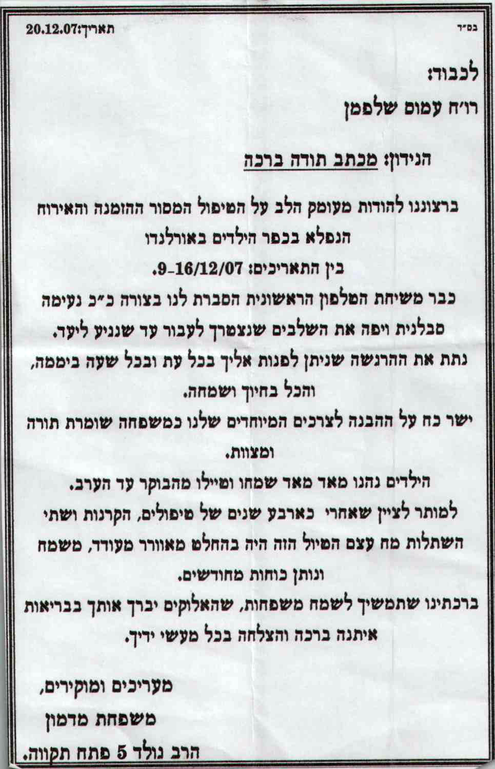 מבחר מכתבים שקיבלנו מילדים ומשפחות, לחצו להגדלה