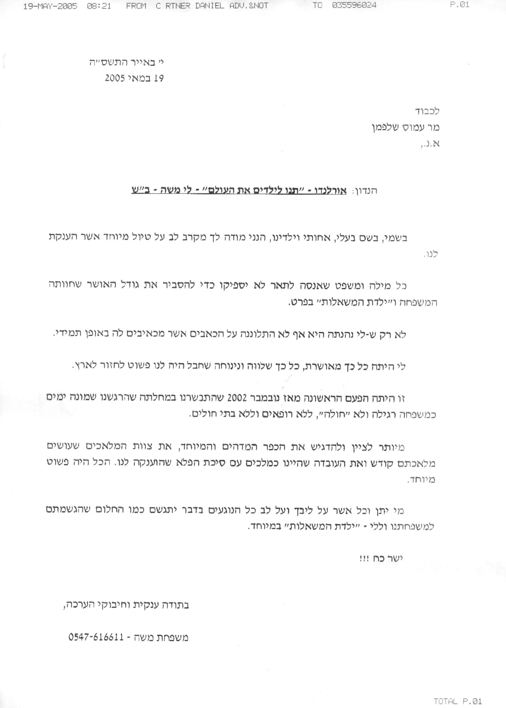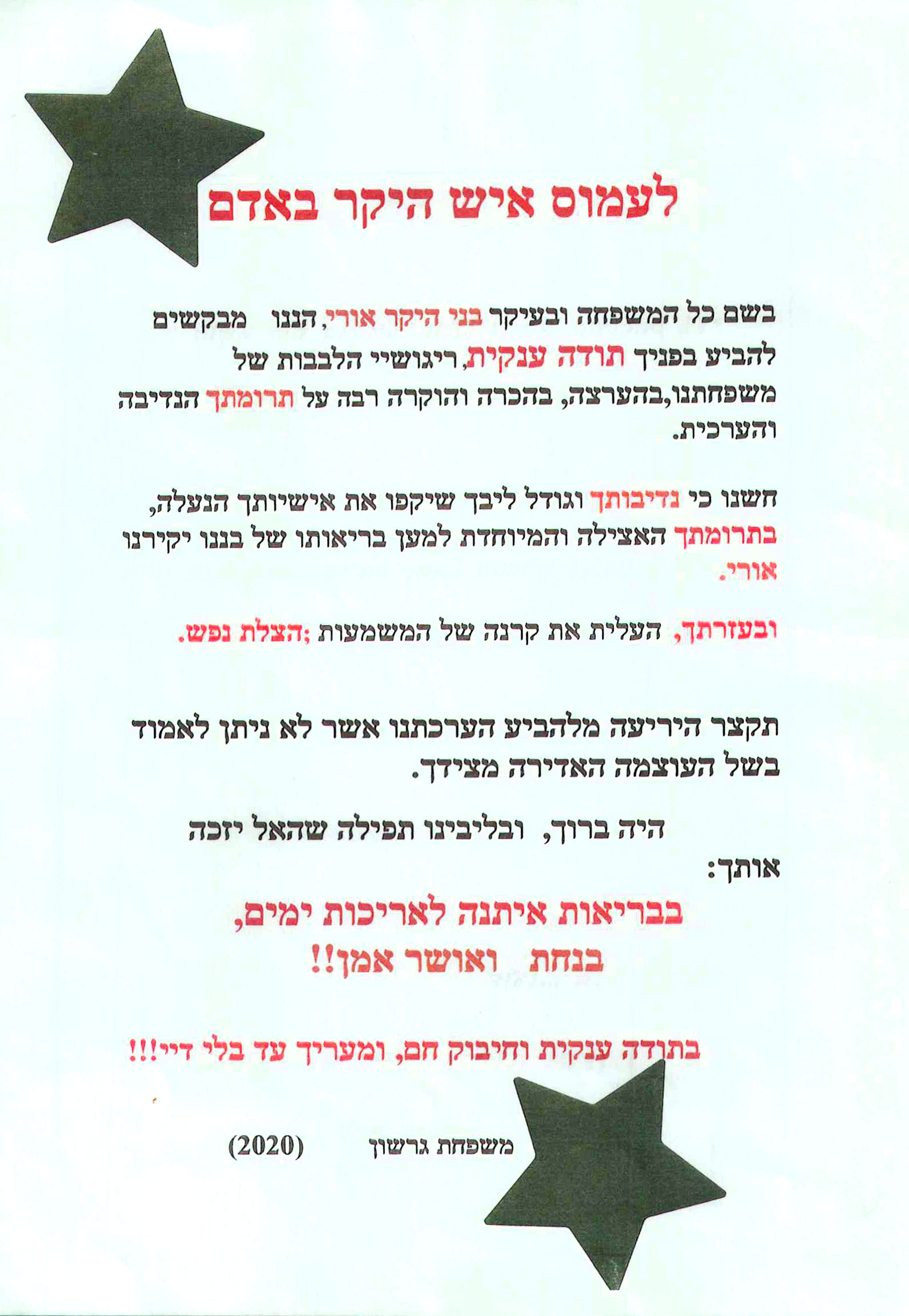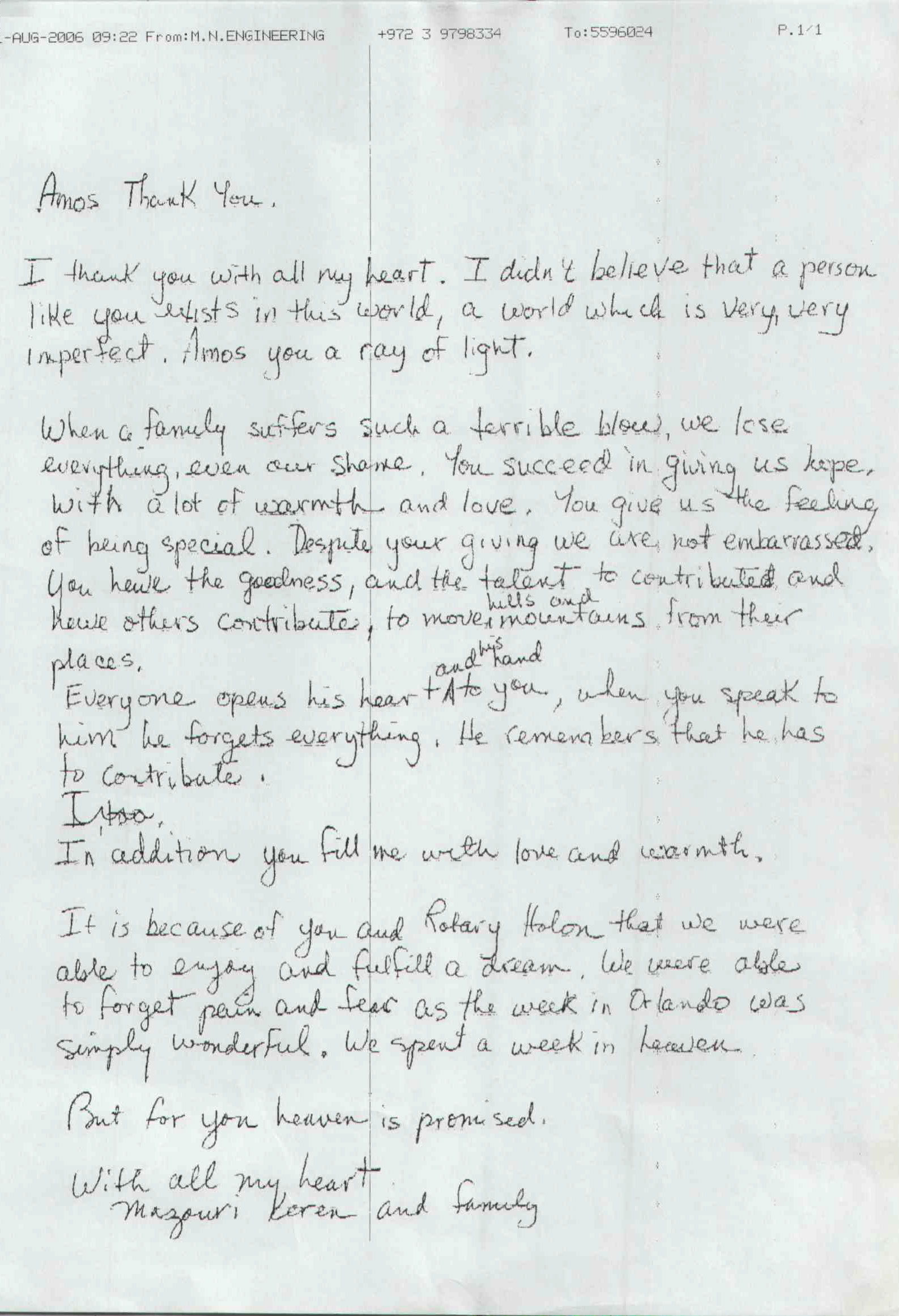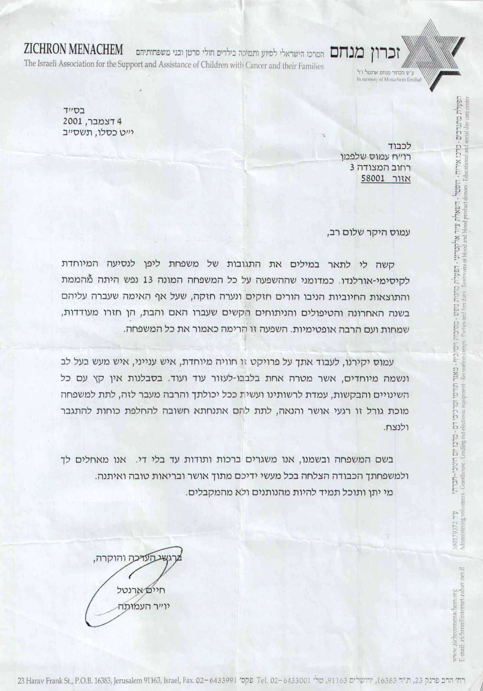 מבחר מכתבים שקיבלנו מילדים ומשפחות, לחצו להגדלה